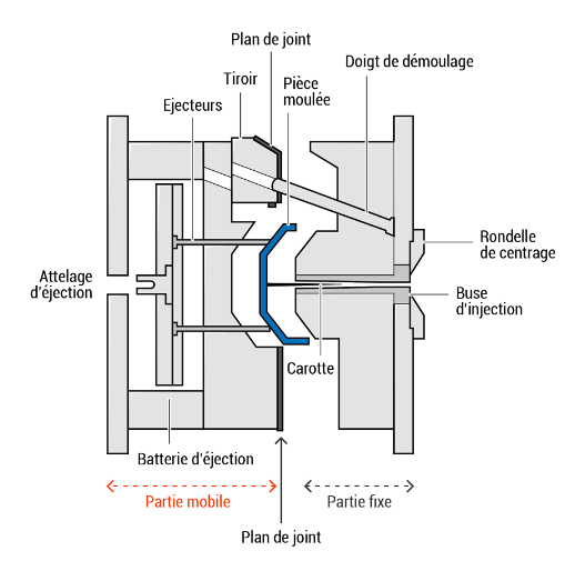 Sélectionnez le type d’éjection que vous souhaitez sur cette pièce : attelée, hydraulique, éjecteurs en forme, plaque dévetisseuse …